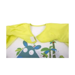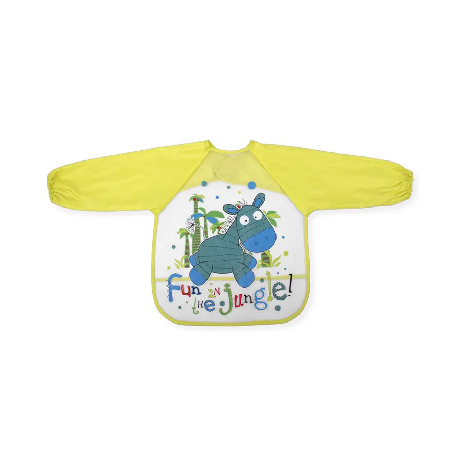 Bavoir avec manches en EVA conforme à la réglementation (non toxique), avec un imprimé joyeux et amusant. Avec fermeture velcro et poche inférieure. Se nettoie facilement avec un chiffon humide.