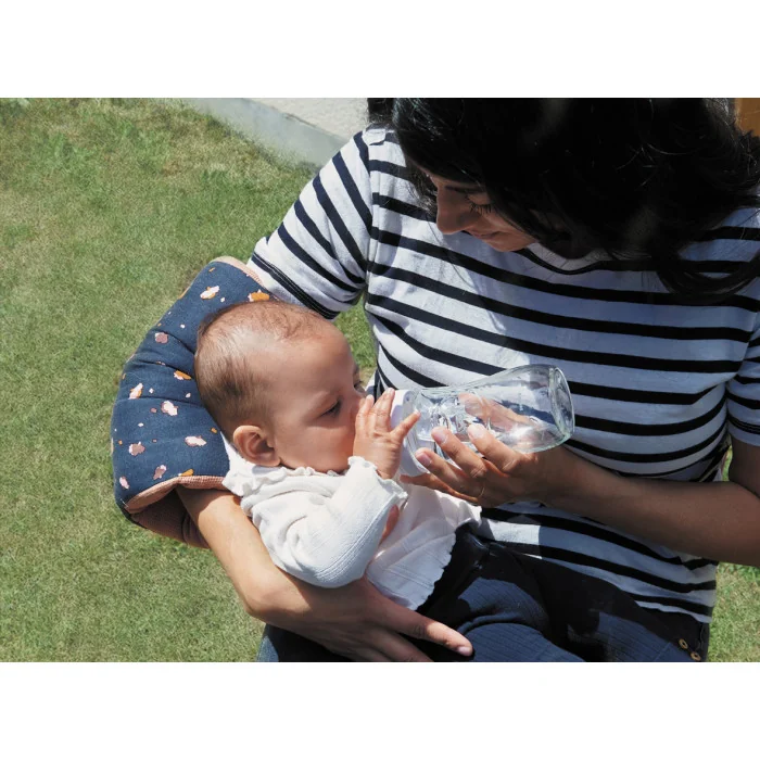 • Avec sa forme ergonomique, le brassard d’allaitement facilite le moment du repas (allaitement ou biberon) en offrant plus de confort et de soutien sous le coude du parent.