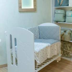 - Côté rabattable : Le panneau latéral se baisse facilement (souvent d’une seule main), permettant un accès direct à bébé depuis ton propre lit sans avoir à te lever pour l’allaiter ou le rassurer.