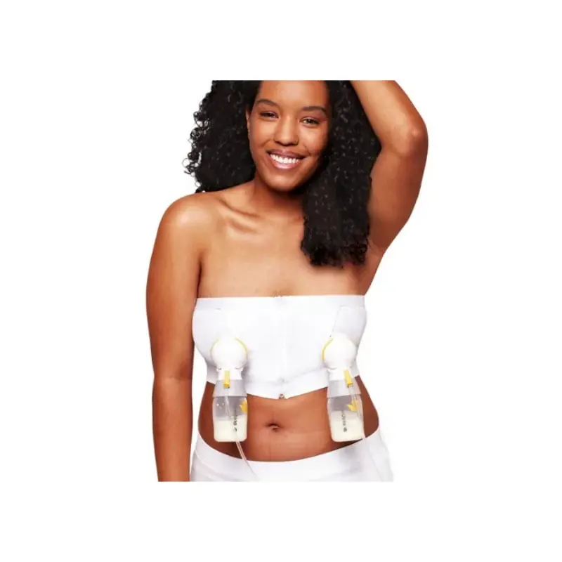 - MEDELA Hands-Free Expression Top Blanc Taille M est un soutien-gorge tire-lait qui vous laisse les mains libres pour faire ce dont vous avez besoin ou simplement pour vous détendre. Il a une conception sûre, avec un matériau souple et adaptable qui rend l’extraction du lait simple et pratique , puisque le tire-lait et les entonnoirs restent bien sécurisés.