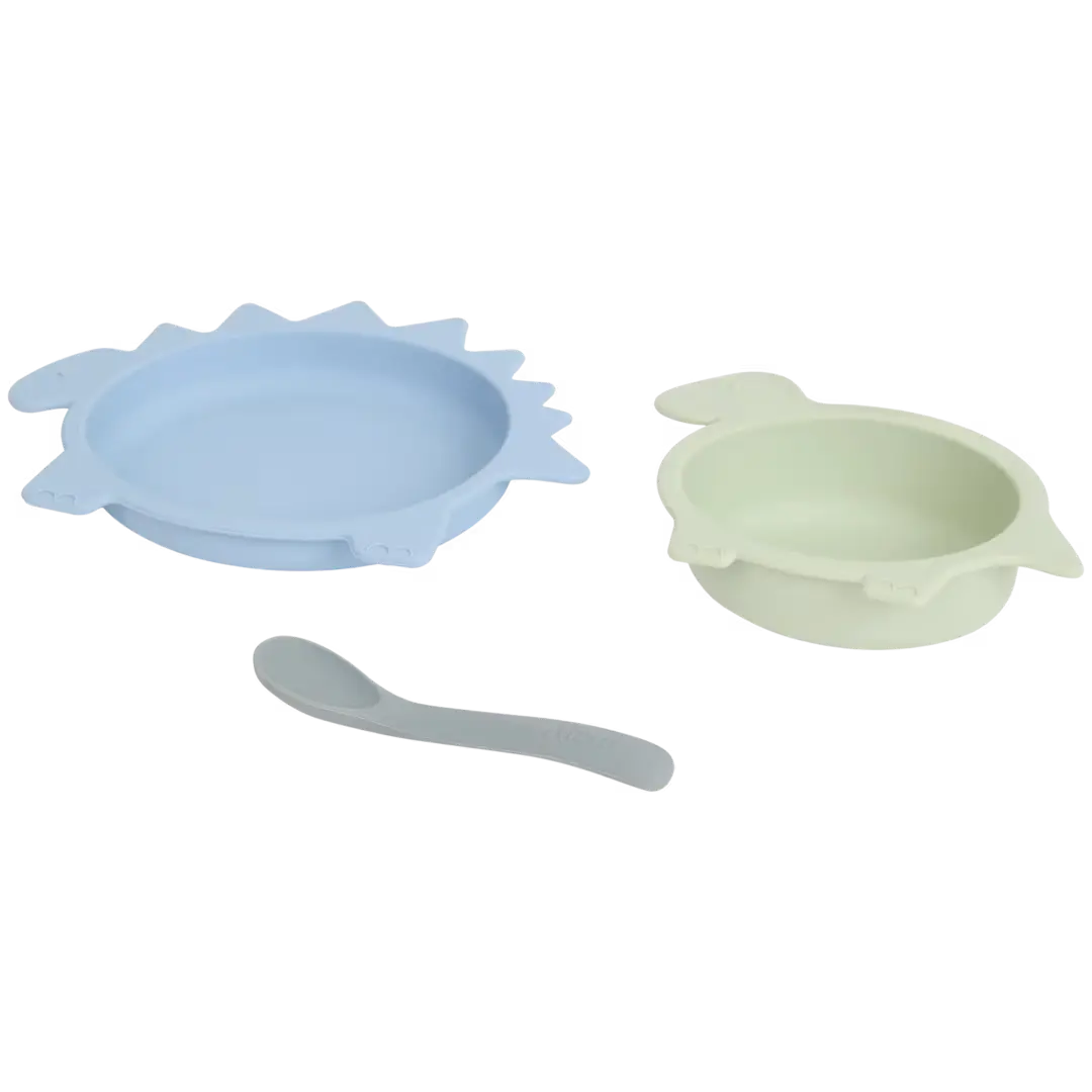 Set repas en silicone sans BPA bleu en silicone est super pratique pour les petits. Leur forme amusante rend le repas encore plus amusant. Aussi facile à laver !
