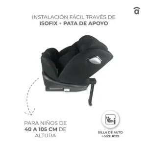 - Fixation ISOFIX + jambe de support pour plus de stabilité.