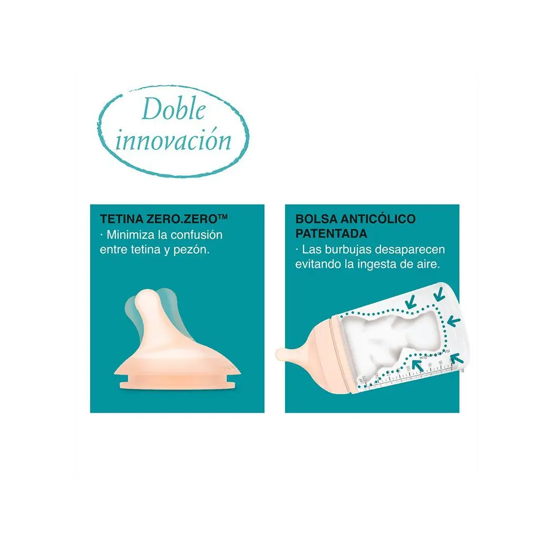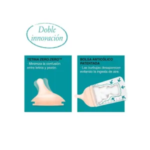 - Cet ensemble allie soin et confort pour les nouveau-nés et les bébés qui préfèrent l’allaitement maternel. Il comprend le biberon anti-coliques de 180 ml, qui imite de manière physiologique les glandes mammaires pendant la succion, réduisant les coliques. De plus, sa tétine en silicone ultra-douce imite le mamelon maternel, évitant la confusion entre tétine et mamelon.